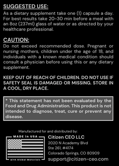 Suggested Use: Take one (1) capsule twice a day as a dietary supplement. For best results, take 20-30 min before a meal with an 8oz glass of water or as directed by your healthcare professional.